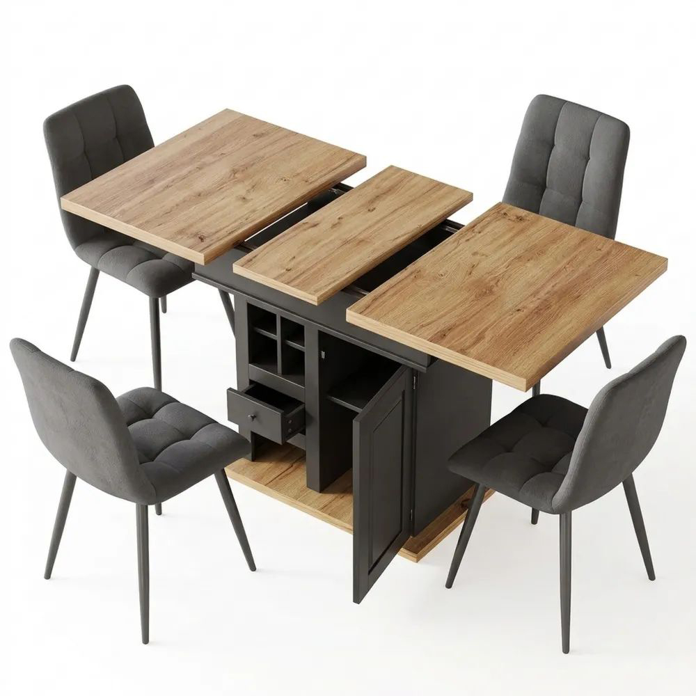 Ausziehbarer Esstisch mit Weinregal und Schubladen für 4-6 Personen