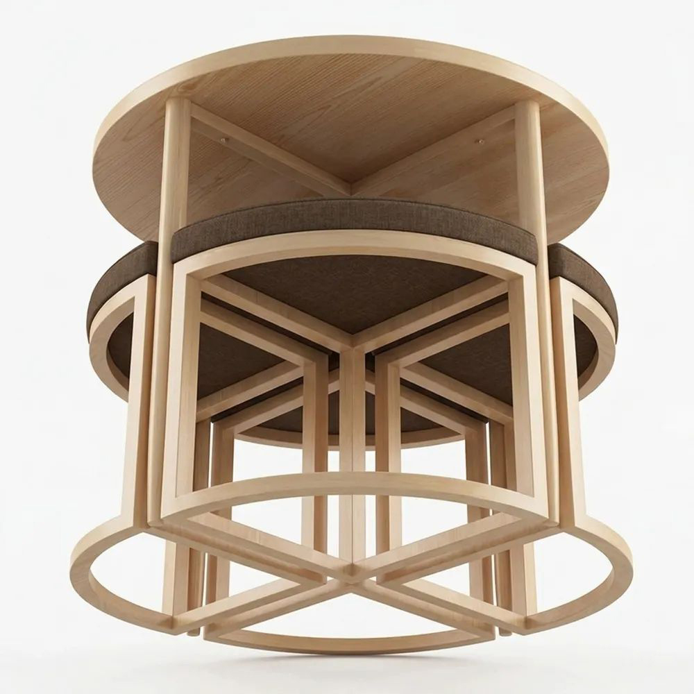 Runder Esstisch mit 4 Stühlen, Esszimmer-Sitzgruppe, Moderner Konferenztisch, Platzsparende Lösung