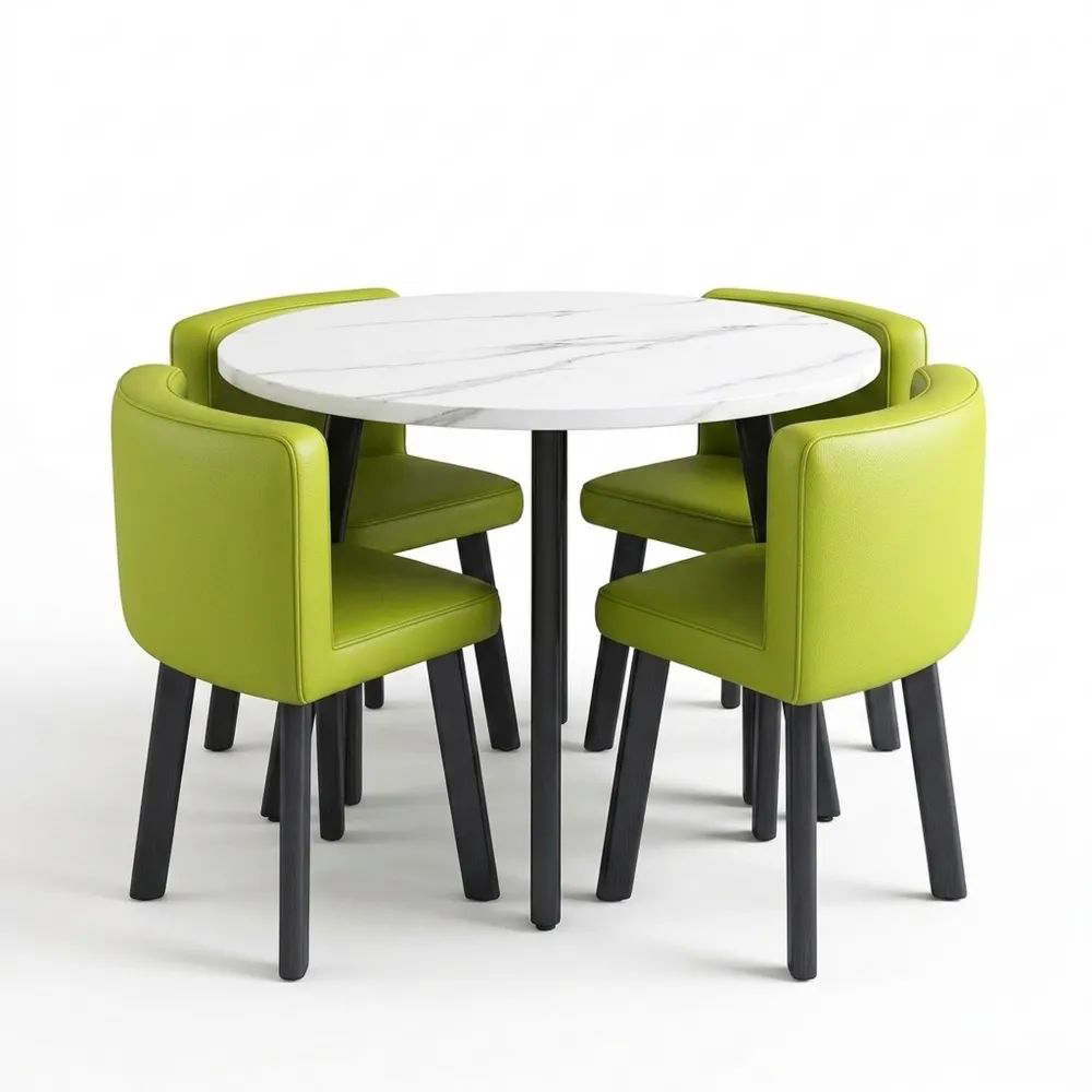 Runder Esstisch mit 4 Stühlen, Esszimmer-Sitzgruppe, Moderner Konferenztisch, Platzsparende Lösung
