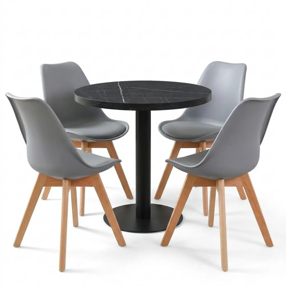 Runder Esstisch mit Marmortischplatte und Metallbeinen, 80x80 cm, Schwarz